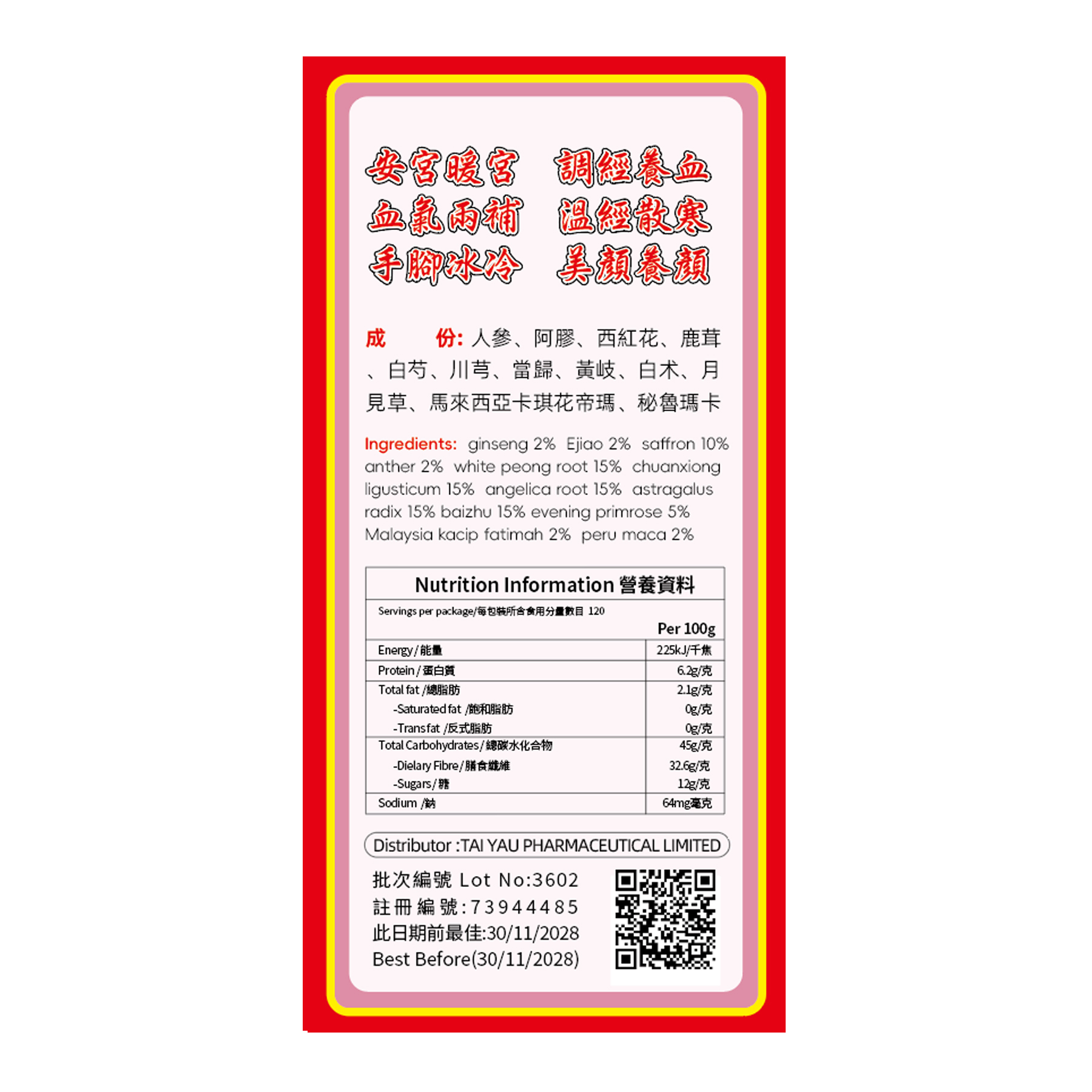 -適合關注各種婦女問題女士服用,包括月事失衡及其引致的各種婦科問題(帶下淋漓、經滞郁疼、大便結秘、氣血虚、皮膚暗啞,口臭舌苔、腰膝酸軟、難眠多夢 )、產後調補不足及婚後久未成孕等身體失調。